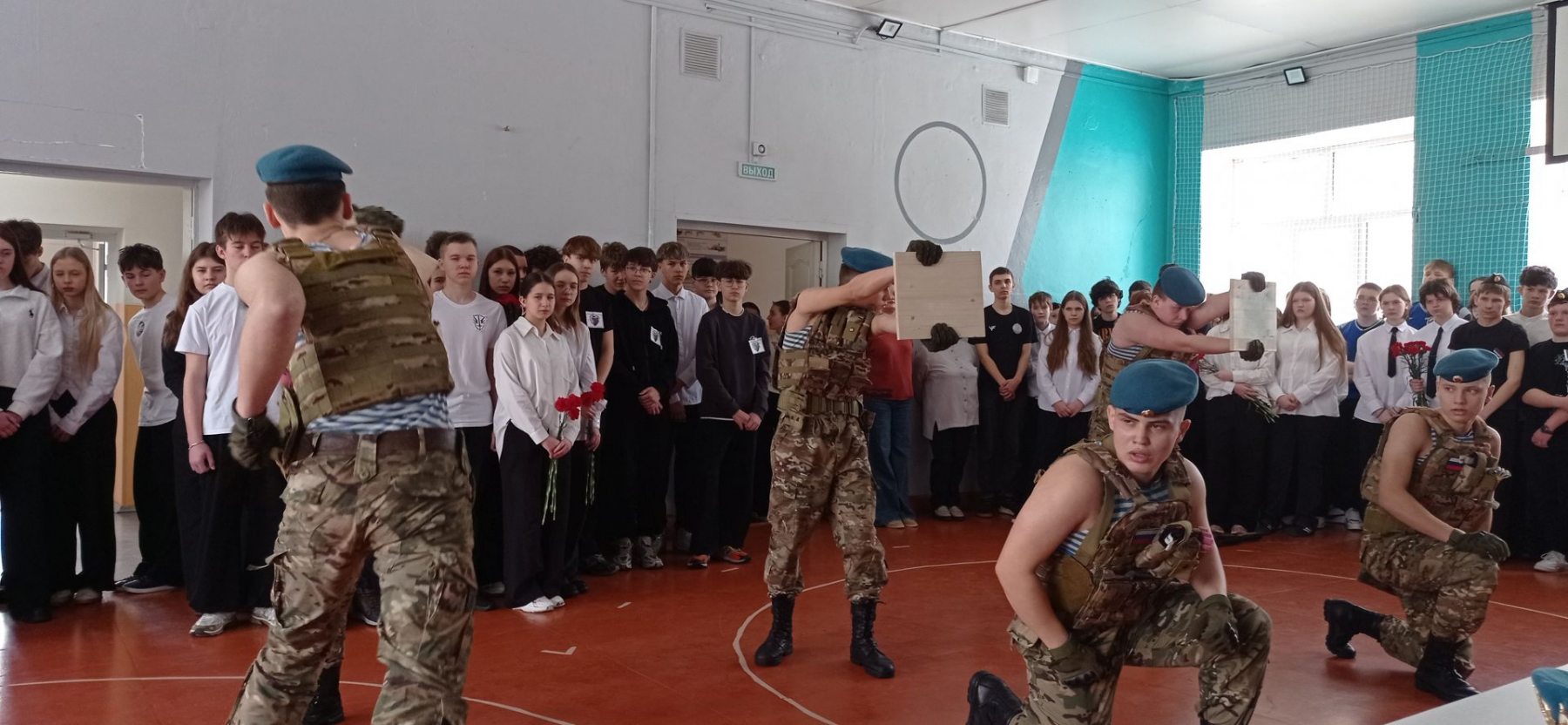 Директор школы А.О. Соболев обратился к ученикам:» Подвиг 6-й роты навсегда вошёл в историю Вооружённых Сил России как пример величайшего мужества, отваги и верности воинскому долгу, готовности к самопожертвованию. Мы должны помнить об этом и передавать эту память дальше».
