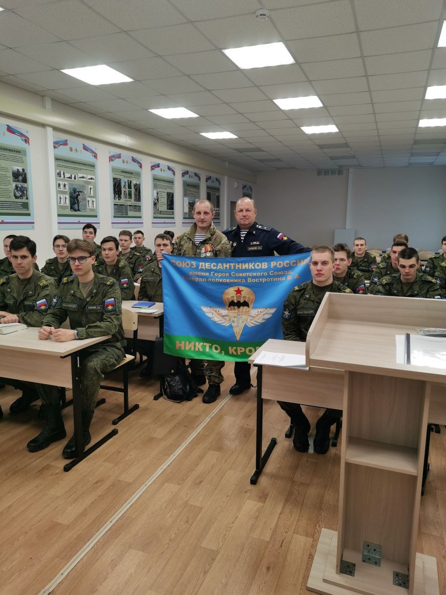 Алексей С. липчанин, воспитанник ВПК «Десантник», после службы в армии заключил контракт и с начала СВО служит и выполняет боевые задачи в разведподразделении. Награжден медалью «За Отвагу». В ходе встречи с курсантами Алексей С. отметил, что успешной службе в армии ему способствовали занятия и тренировки в ВПК «Десантник», где он получил необходимые такие навыки, как совершение парашютных прыжков, стрельб из стрелкового вооружения, физическую и морально-психологическую подготовку, умения преодолевать трудности и выработки стойкости духа.