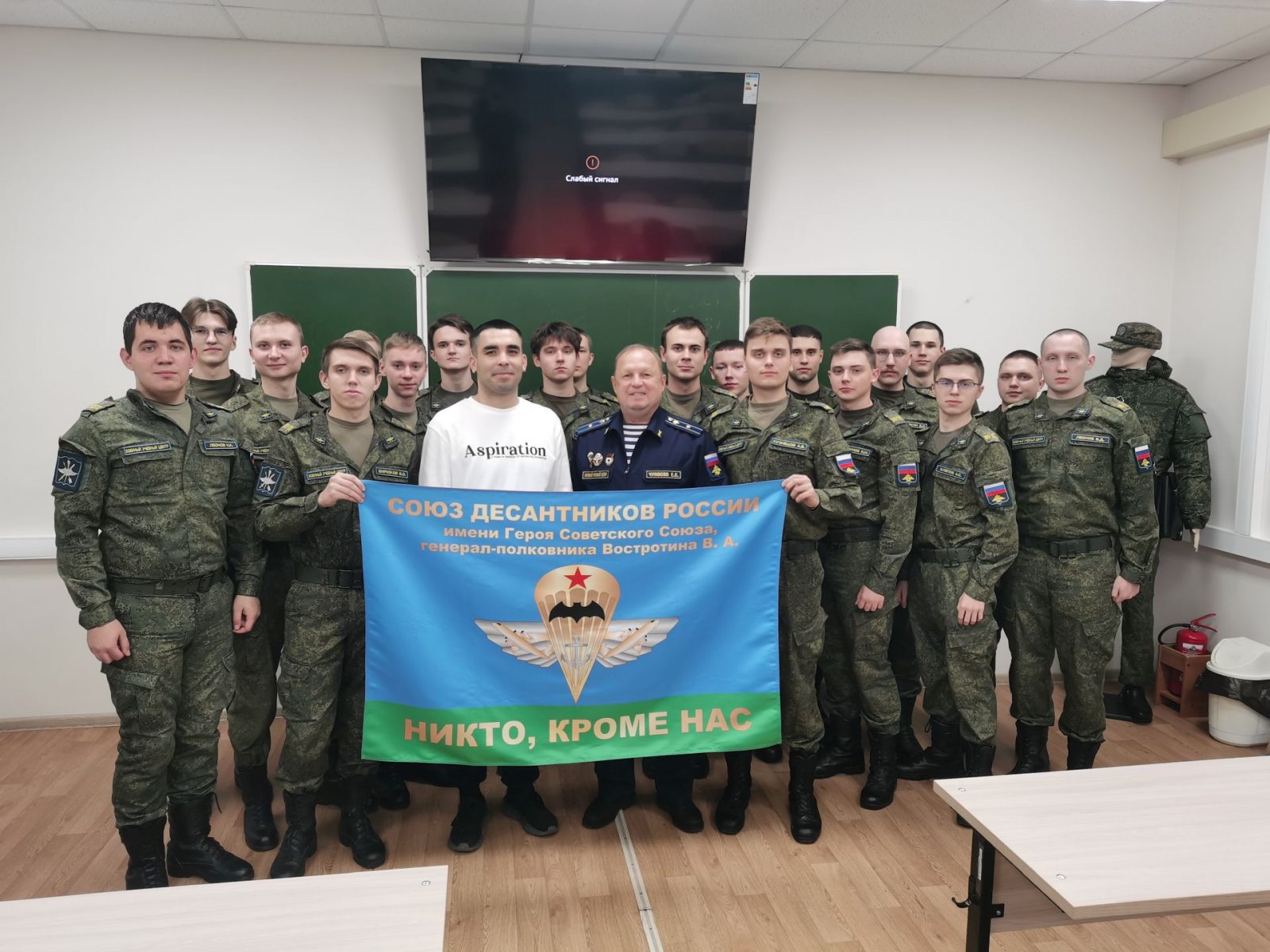 В рамках реализации проекта «Герои нашего времени» прошла встреча курсантов ВУЦ с участником СВО, капитаном, командиром группы спецназа Романом Жураевым. Роман Жураев участвовал в контртеррористической операции на Северном Кавказе, а также в боях в Луганской и Донецкой народных республиках. В 2022 году он получил лёгкое ранение, после реабилитации вернулся в строй. В одном из боёв снаряд упал рядом с ним, в результате чего Жураеву ампутировали ногу. Несмотря на это, он вернулся на фронт с электронным протезом.